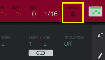 To open the metronome settings, tap the Metro icon at the top left of the screen in Main Mode.