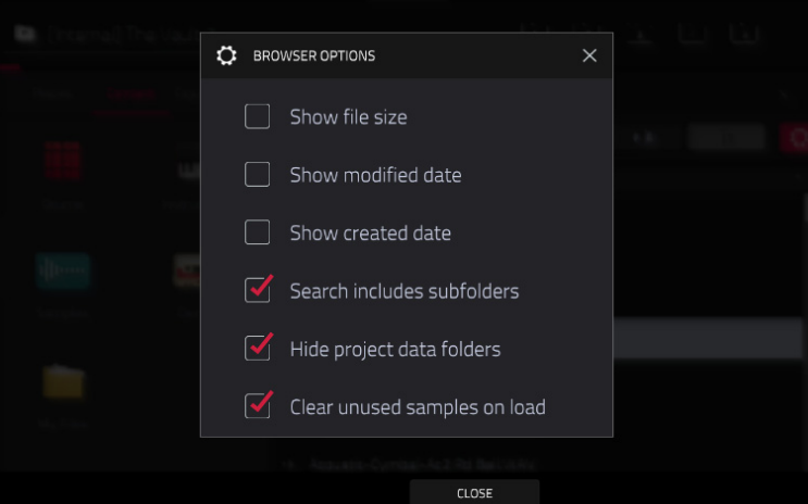 - Check the Clear unused samples on load box to remove samples that are not in use when loading a project