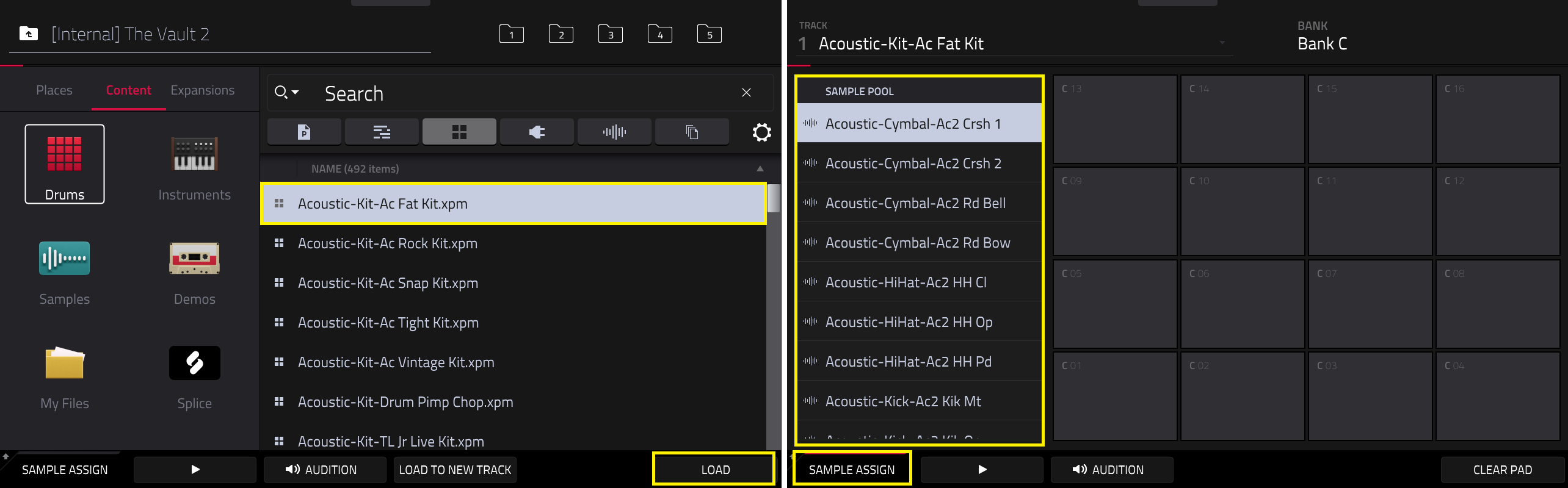 To view the project’s sample pool and pads, tap Sample Assign in the lower-left corner.