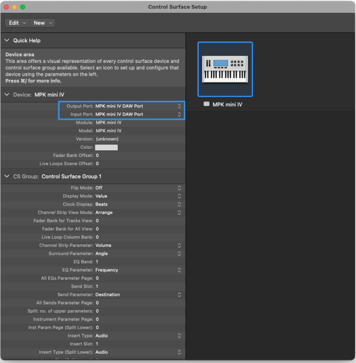 MPK mini IV DAW Port.