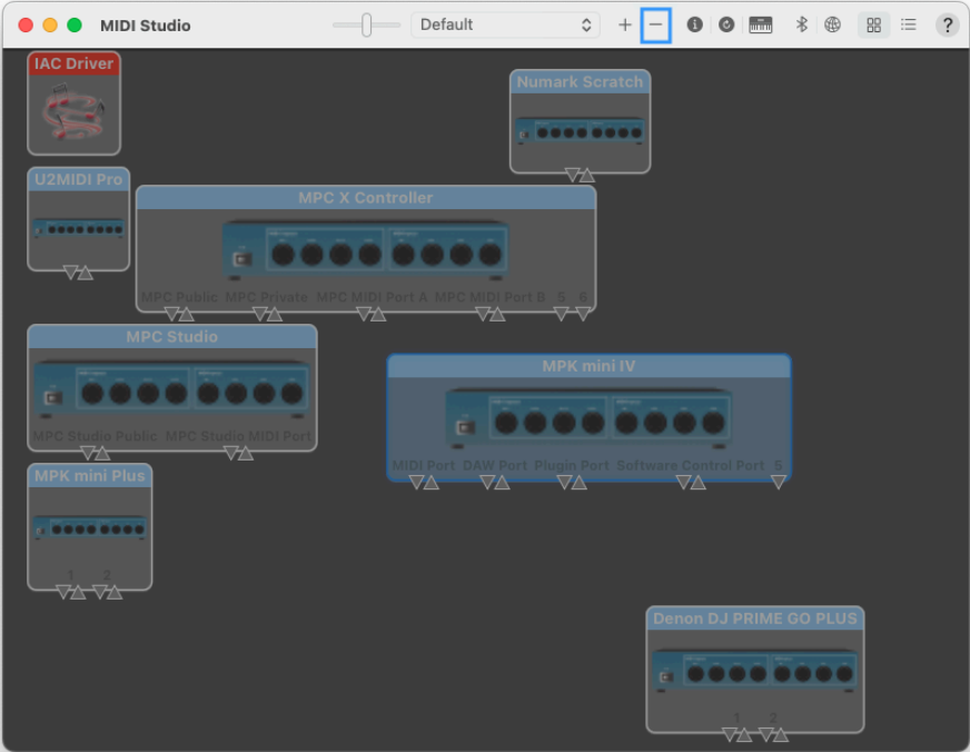 Window > Show MIDI Studioor pressCMD + 2)Locate MPK mini IV in the MIDI Studio window.