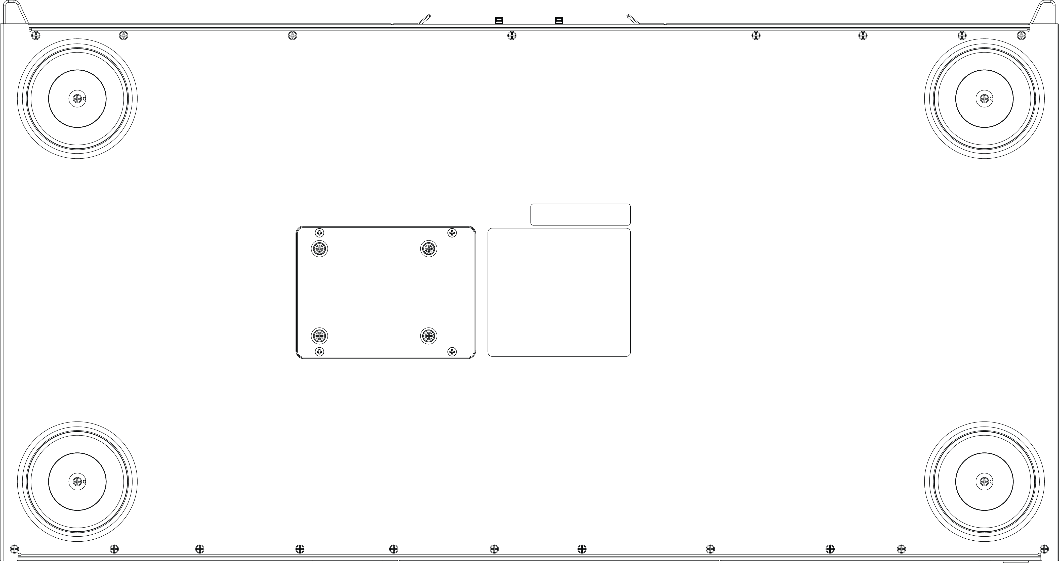 At the base of the device, you'll notice a panel area secured by 4 screws that you can remove to access the SATA Bay, allowing you to connect an SSD for storing your music files while using the device in standalone mode.