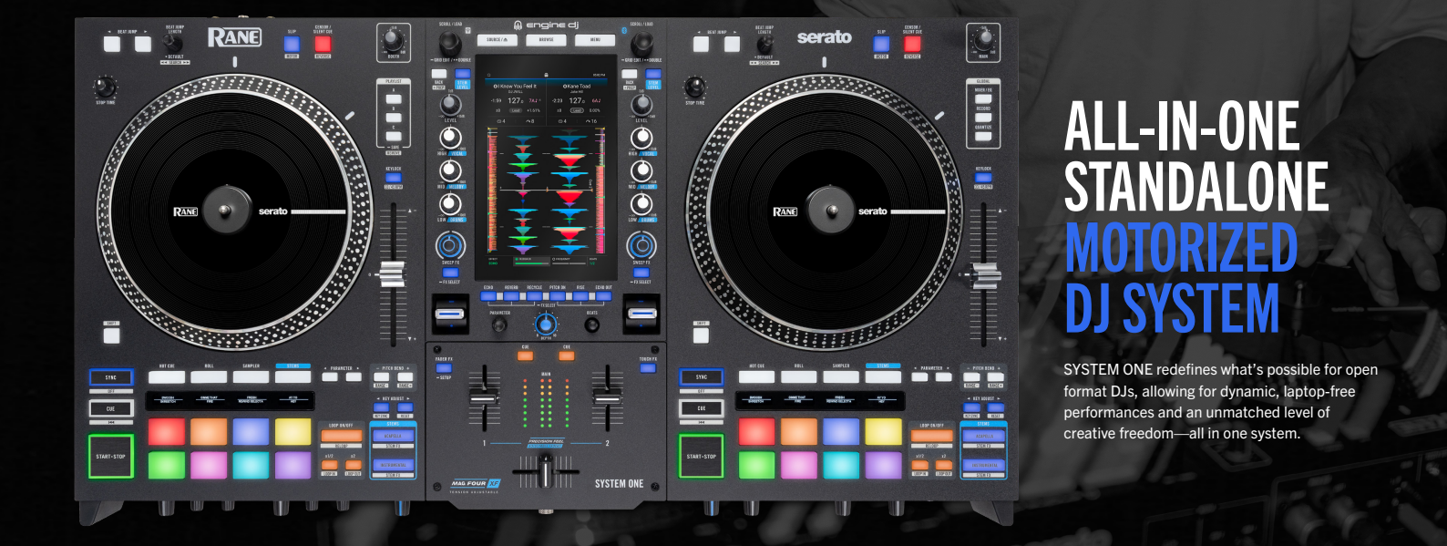 Introducing the RANE SYSTEM ONE - the world’s first all-in-one standalone DJ system with motorized platters, fusing the legacy feel of turntables with the freedom of modern, laptop-free standalone DJ technology.