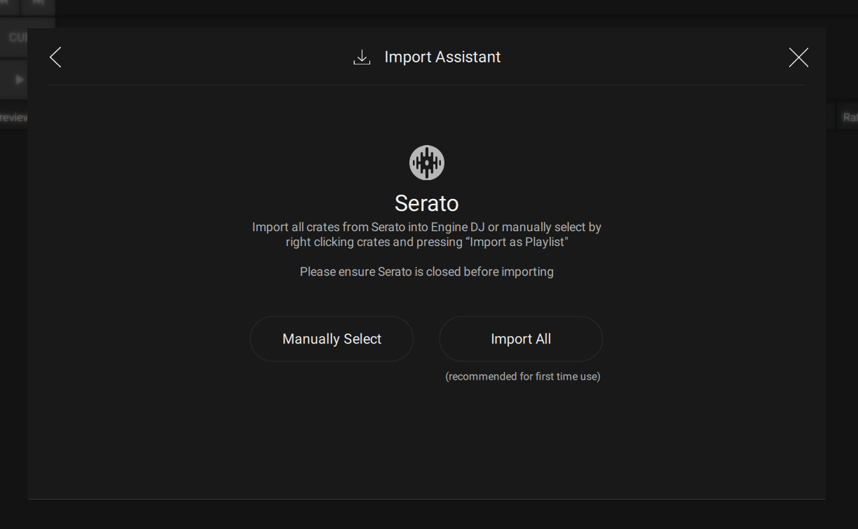 You will then be presented with options to manually select the Serato crates you wish to import or you can choose to import all crates. We recommend choosing Import All.