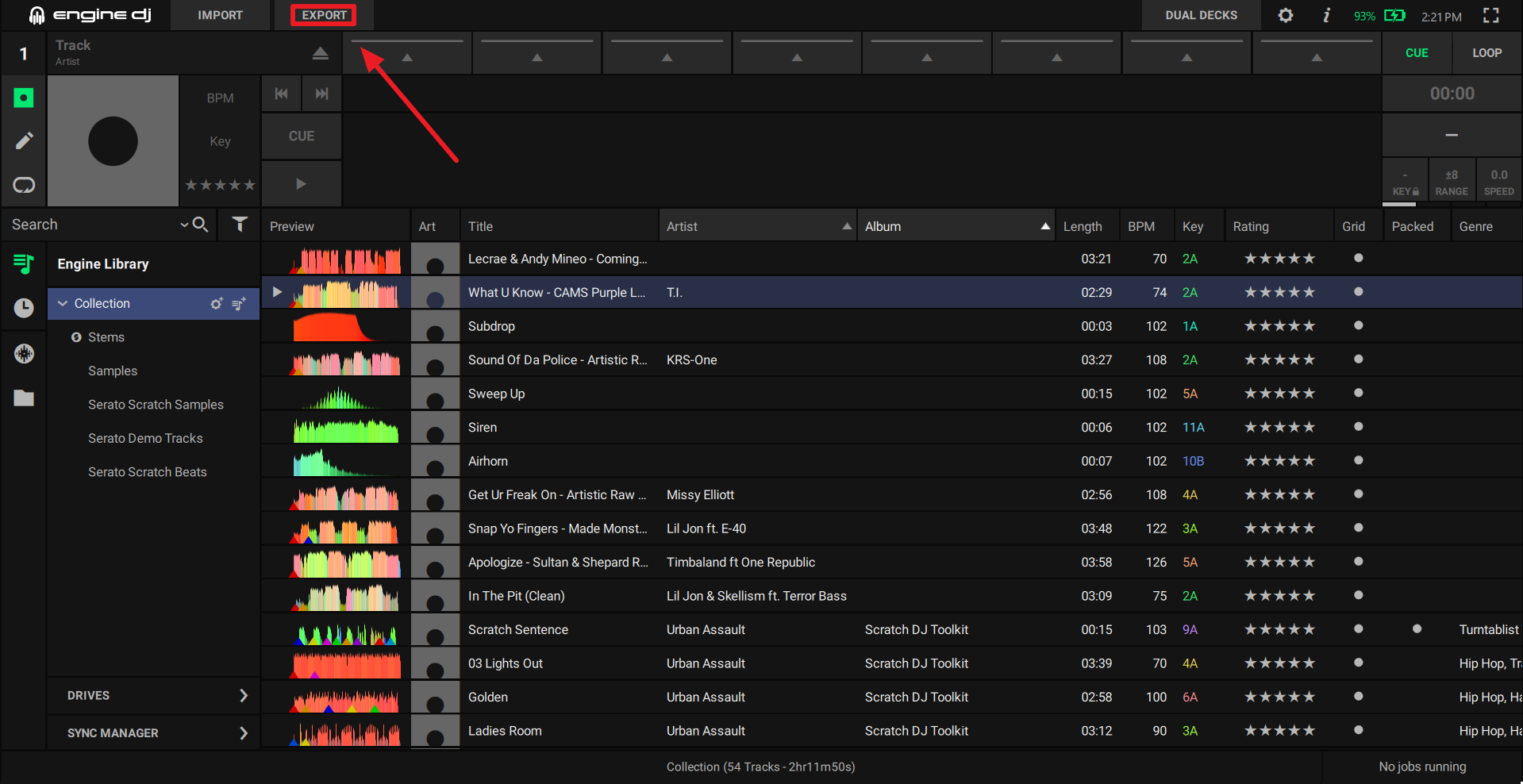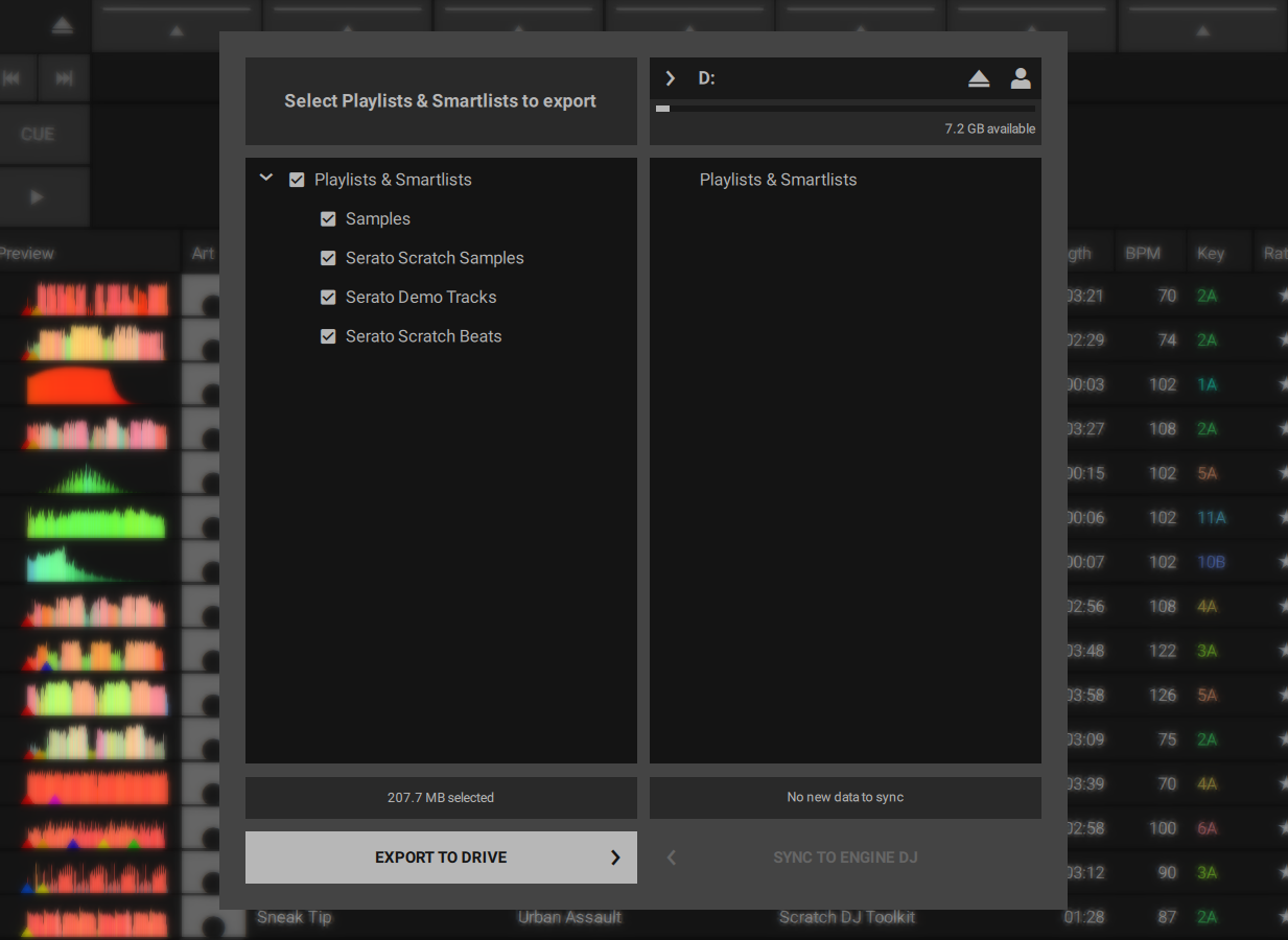 From here, you can use the SYNC MANAGER to export your playlists to your SYSTEM ONE storage device. Choose individual playlists or select all, then click on EXPORT TO DRIVE.