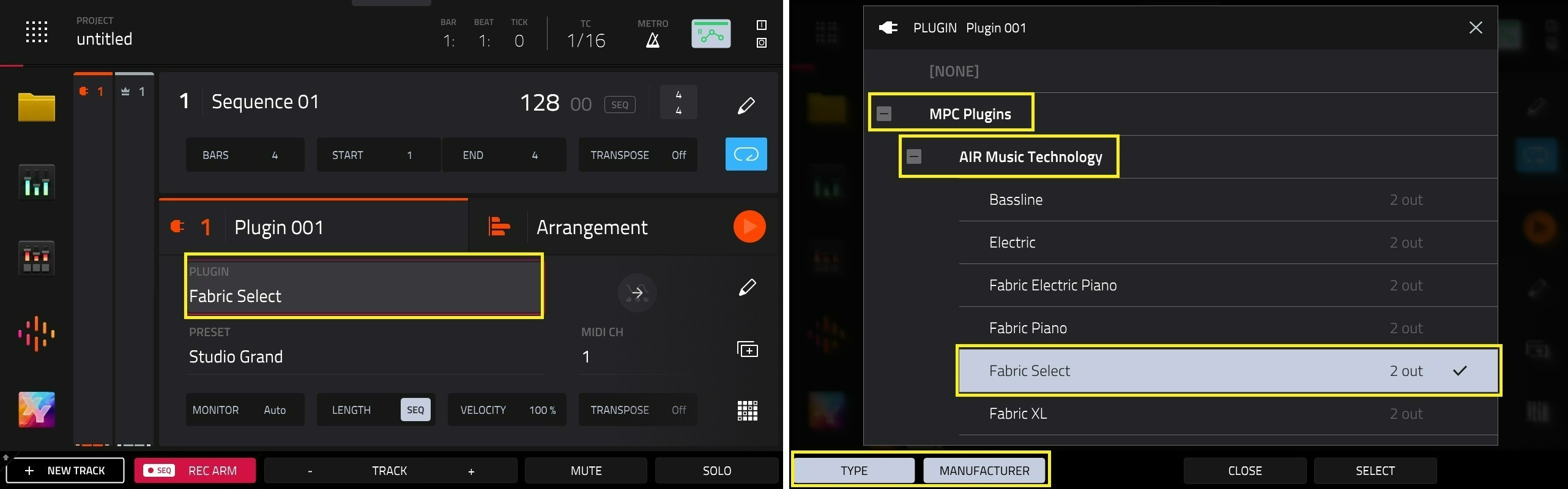 Note: If you find that you are unable to activate the plugins, please check that you have logged into your inMusic Profile on your MPC in standalone mode.