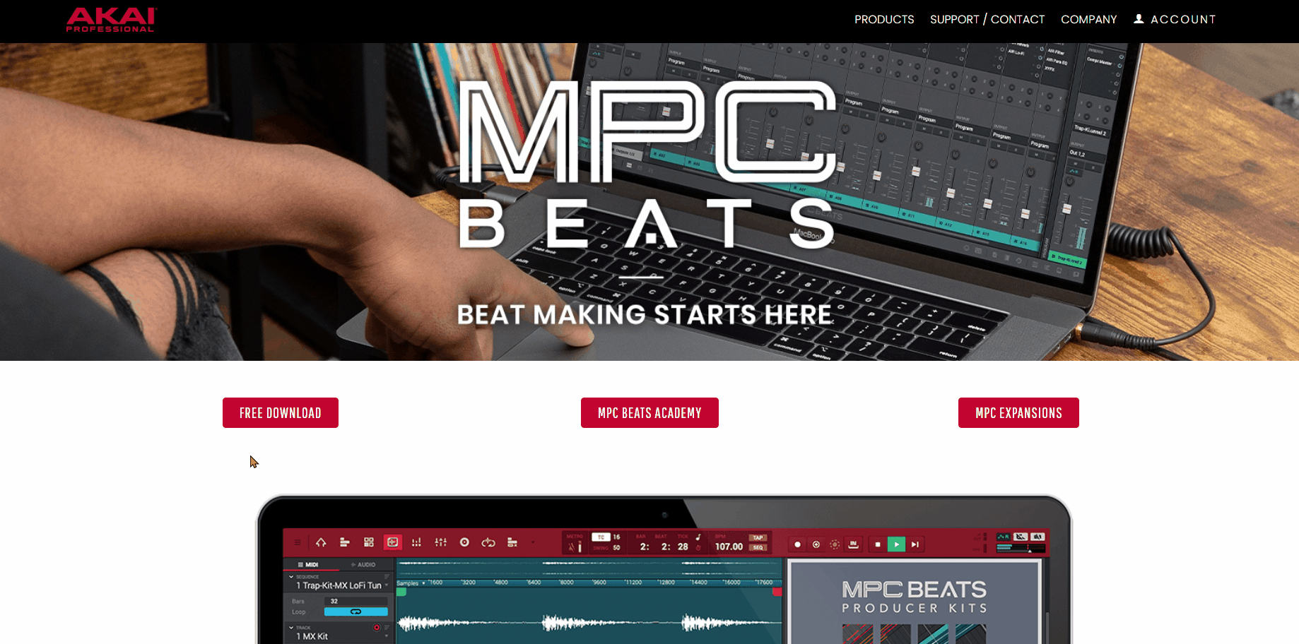 Download Now をクリックすると、MPC Beatsの製品ページが表示されます。