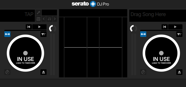 接続が完了すると、Seratoのバーチャルデッキに「IN USE - LOAD TO TAKEOVER」と表示されます。